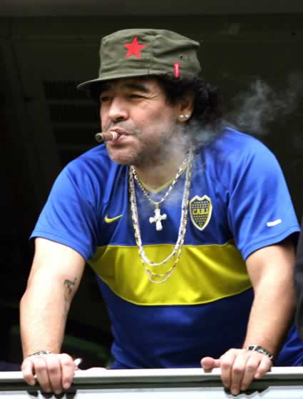Maradona es uno de los seres mas despreciable que alguna vez haya participado en alguna actividad deportiva. Es deshonesto, sucio, tramposo, drogadicto, y carente de ni un apice de sportmanship. Le puso tranquilizadores al agua de un equipo contrario en un juego para que perdieran, metio un gol con la mano donde se usan los pies y la cabeza y lo hizo pasar como hazaña. Para colmo es intimo amigo del Kagandante, lo admira y adora. Esto ultimo seria suficiente para hacerlo una persona deleznable y ruin.