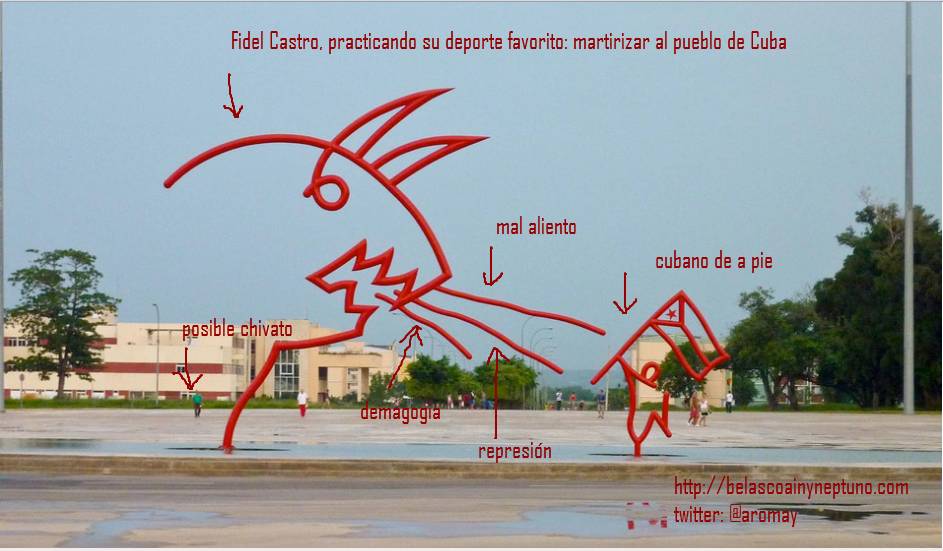 Foto vista en Penúltimos Días; modificada con gusto y mala leche por este editor. La nota que sigue es de PD: Foto: Escultura “Una bandera frente a un imperio”, de Oscar Niemeyer en el patio de la Universidad de las Ciencias Informáticas de Cuba.
