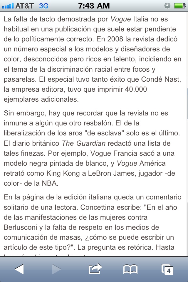 El diario español El País, luego de comentar una nota con tono racista publicada en la web de la edición italiana de Vogue, se refiere al baloncestista negro Lebron James como un “jugador —de color— de la NBA”.