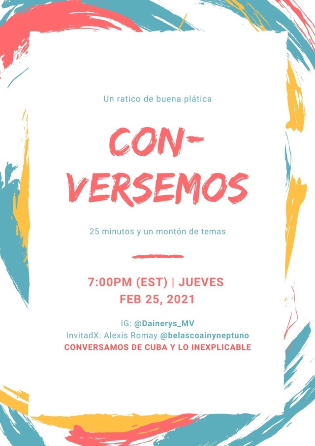 La cita es mañana, jueves, 25 de febrero, a las 7PM —hora de Las noventa Habanas—, en la cuenta de Instagram de Dainerys Machado Vento. ¡Nos vemos!
