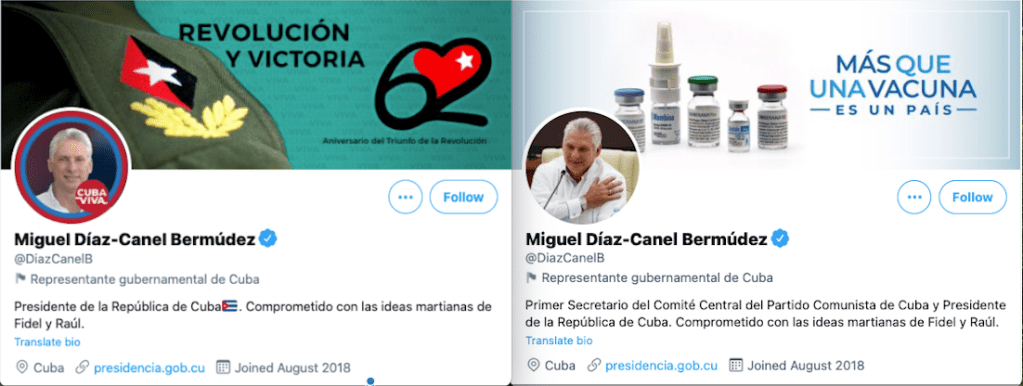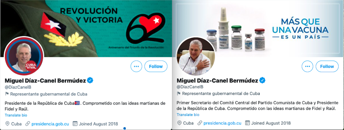 en Twitter, Díaz Canel